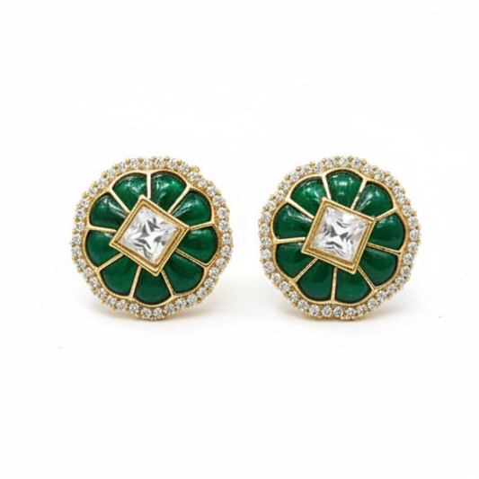 Navratna-Style Pearl Border Pachi Kundan Studs