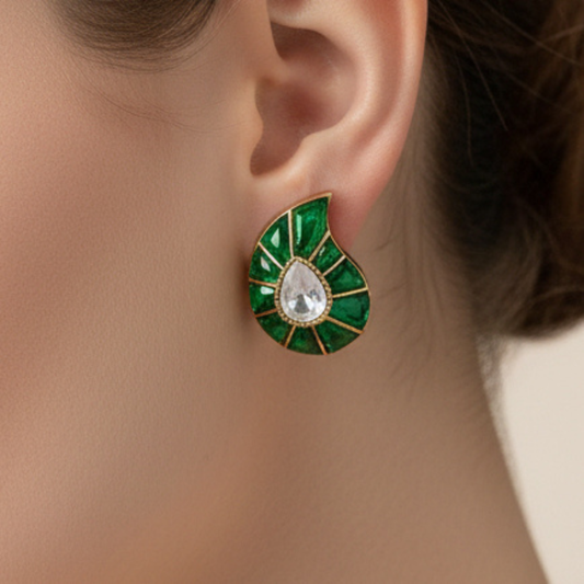 -40% OFFDelicate Kundan Leaf Stud Earrings