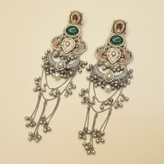 German silver Chandbali Heritage Shoulder-Dusters