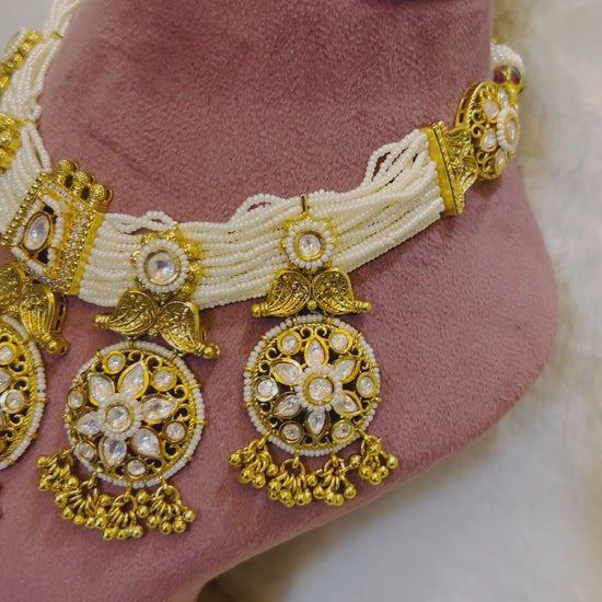 Make an unforgettable statement with the Regal Pearl Kundan Choker Set a true treasure for your jewelry collection.