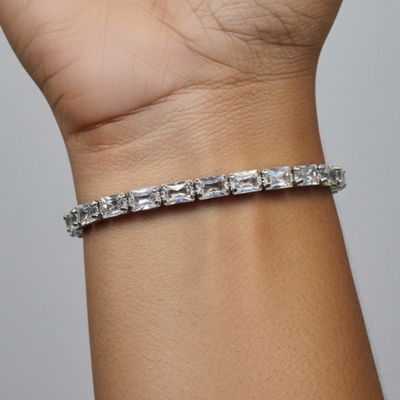 Make a statement with timeless elegance through this Baguette Crystal Tennis Bracelet. Crafted with precision-cut rectangular crystals, this bracelet delivers a sleek, luxurious shine that never goes out of style.