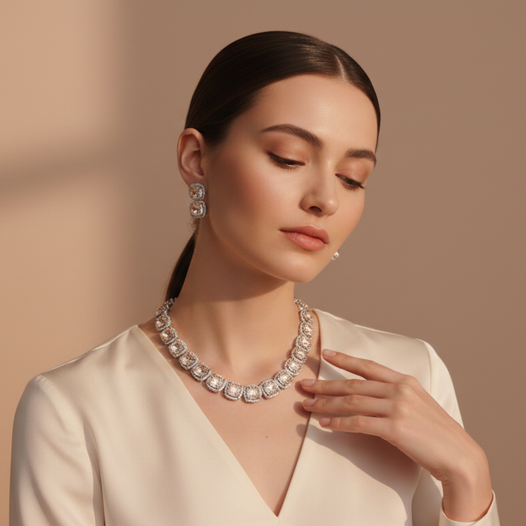 Brighten up any look with the “Golden Glow set” jewelry set, featuring a dazzling array of radiant yellow gemstones framed in a delicate silver halo. This set includes a beautifully crafted necklace with matching earrings, each stone shining with a warm, sunlit brilliance. Perfect for both daytime elegance and evening sophistication, this set adds a touch of opulence to any outfit. Whether for a special occasion or to elevate your everyday style, “Golden Glow” is designed for those who love to make a bold, glamorous statement.