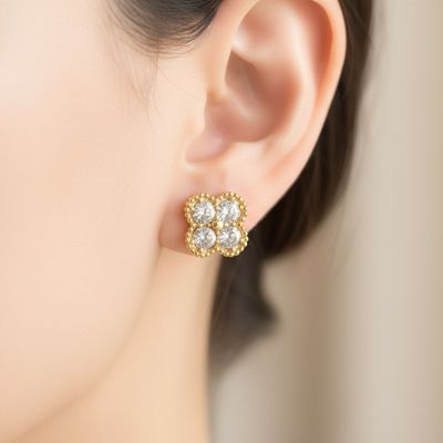 These floral stud earrings feature a graceful four-petal design with shimmering crystal stones, available in elegant gold and silver finishes. Lightweight and timeless, they add a soft sparkle to everyday looks while remaining subtle enough for office wear and effortless styling.