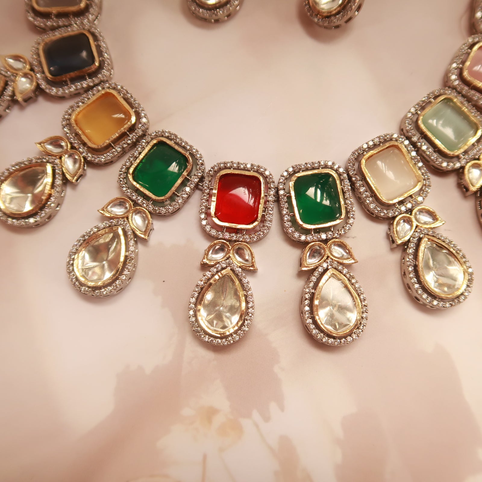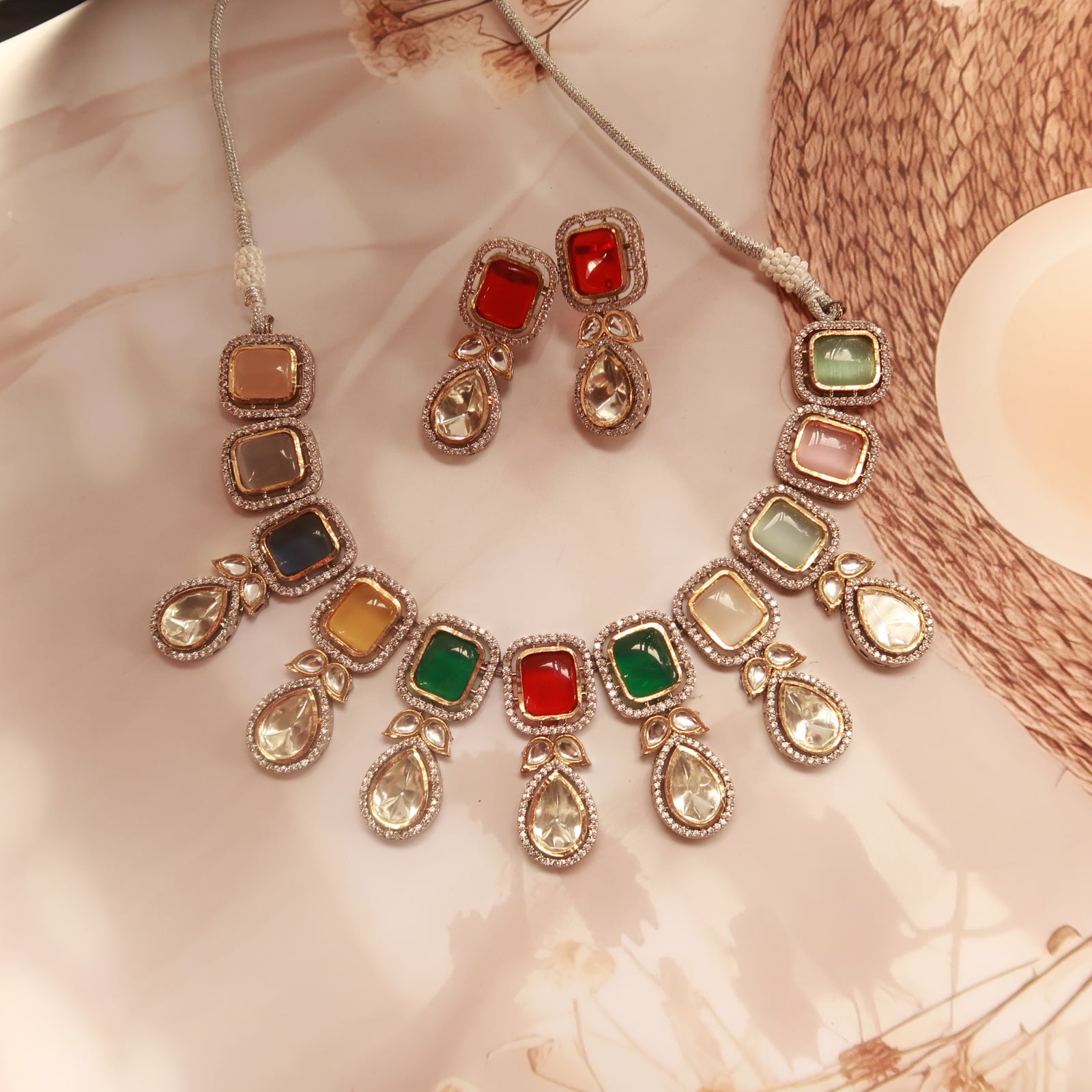 Crafted with precision, the set showcases a blend of rich hues, intricate detailing, and dazzling stones, making it the perfect choice for special occasions, weddings, and formal events. The carefully selected gemstones and fine metalwork create a striking balance between tradition and modern elegance.