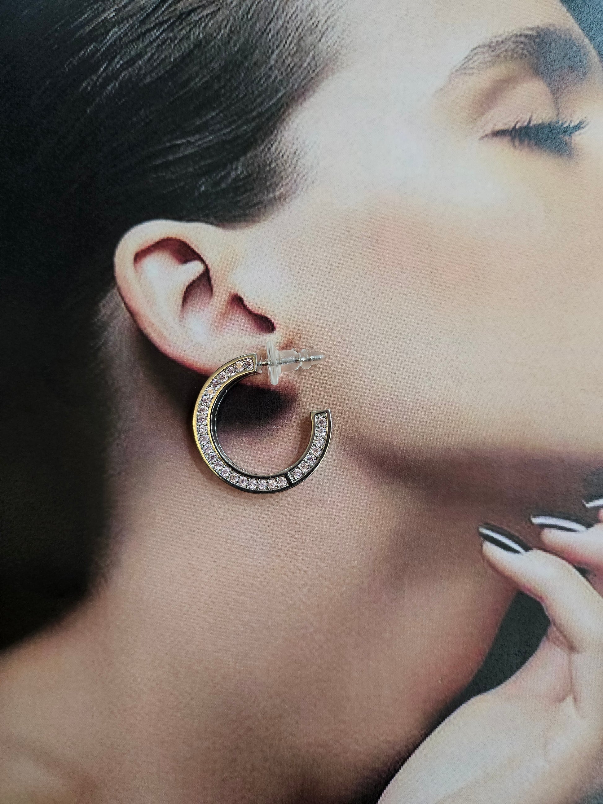 Add a touch of sophistication to your look with these stunning crescent-shaped hoop earrings. Crafted with precision, these earrings feature pavé-set shimmering gemstones that radiate elegance and charm. The sleek crescent design offers a contemporary twist to classic hoops, making them perfect for both everyday wear and special occasions.