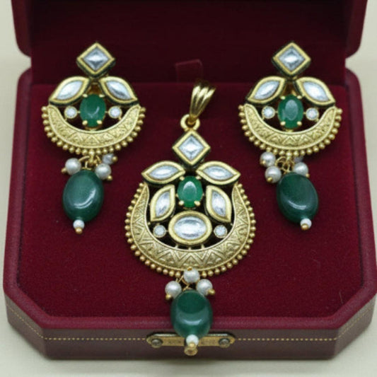 Meher Green Polki Pendant & Earrings Set